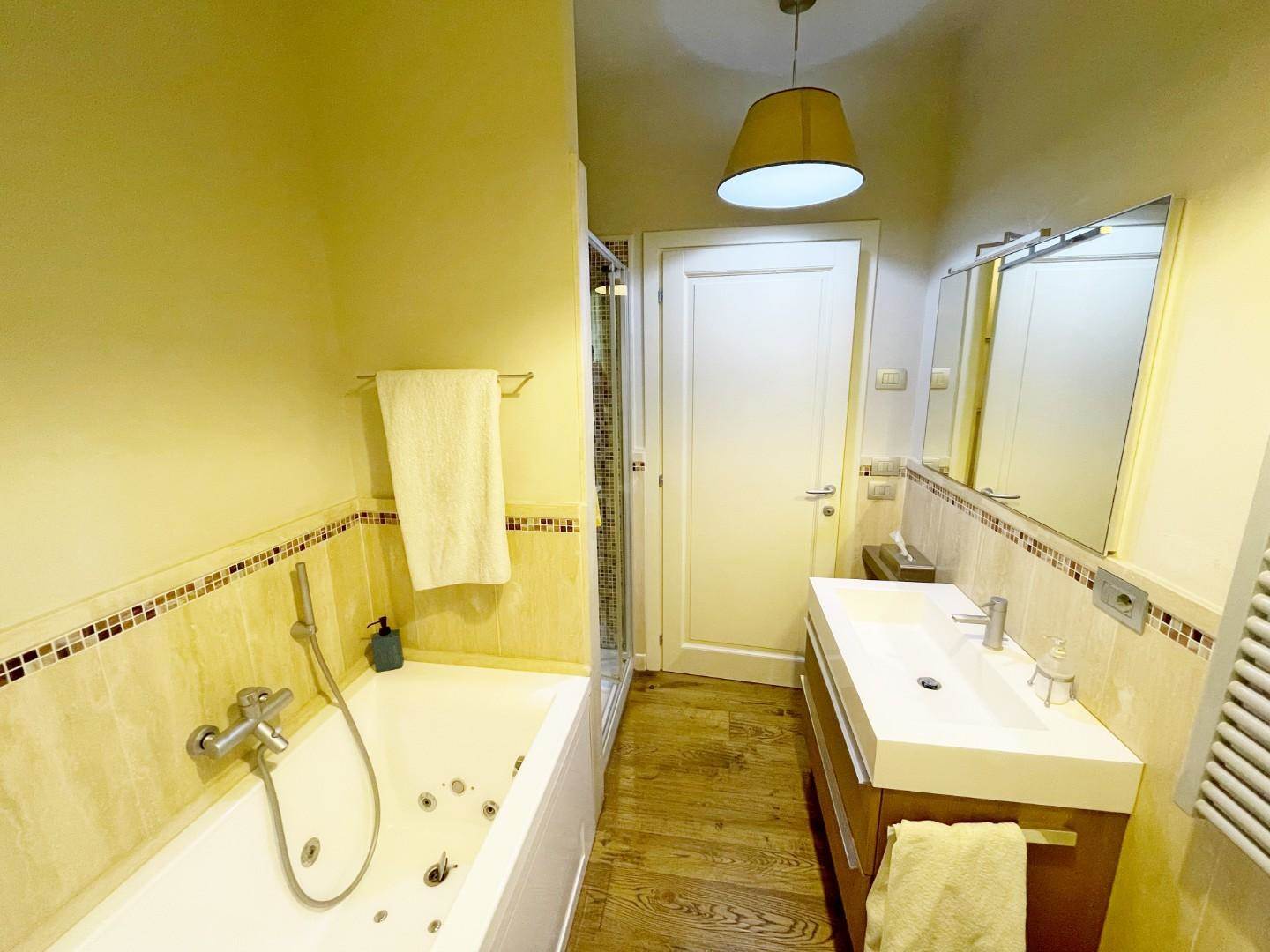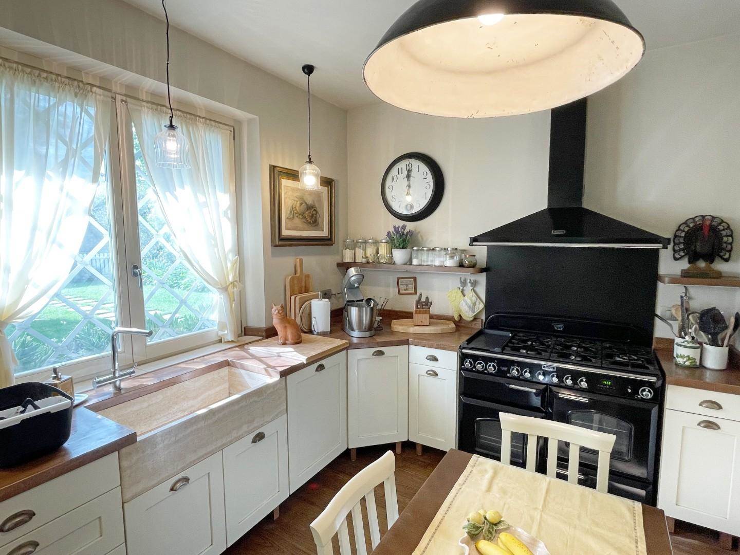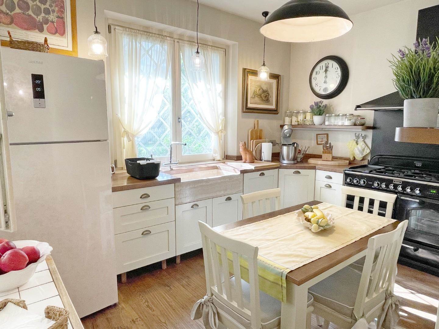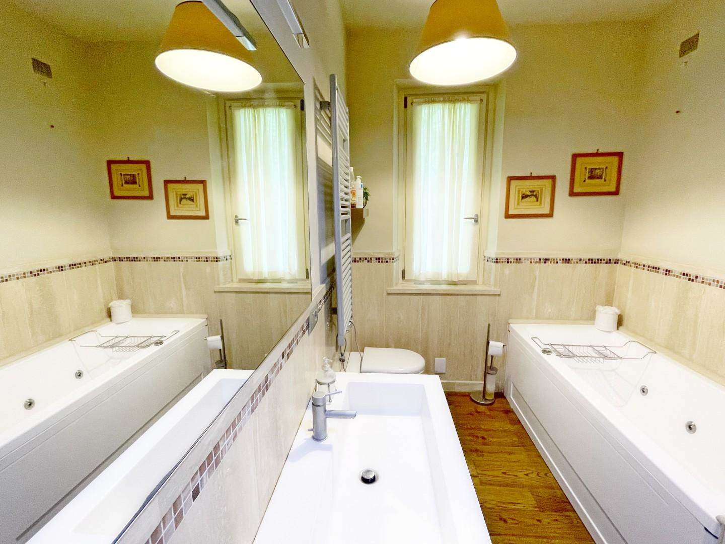 На первом этаже: просторная гостиная с входом, оборудованная кухня, две спальни с двуспальными кроватями и две ванные комнаты. Полуподвальный этаж: жилая зона, две спальни с двуспальными кроватями и две ванные комнаты. Дом окружен прекрасным садом площадью 1300 квадратных метров, на первом этаже есть просторная терраса. К объекту прилагается 4 парковочных места.